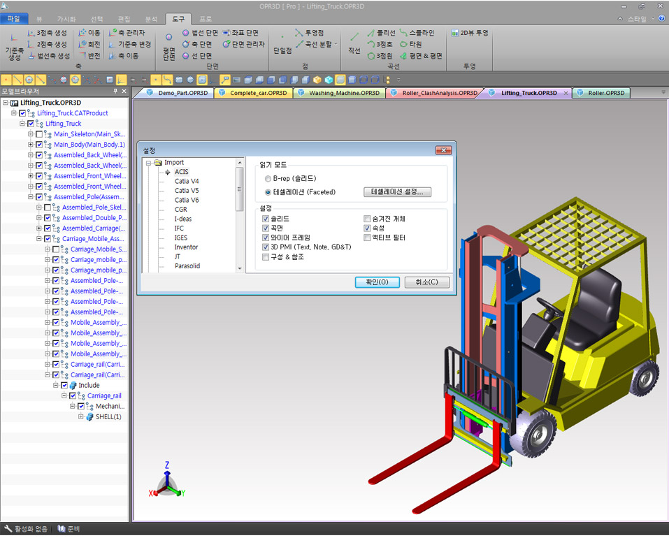 OPR 3D는 별도의 데이터 변환 과정 없이 원래의 3D, 2D 데이터를 불러들일 수 있습니다.